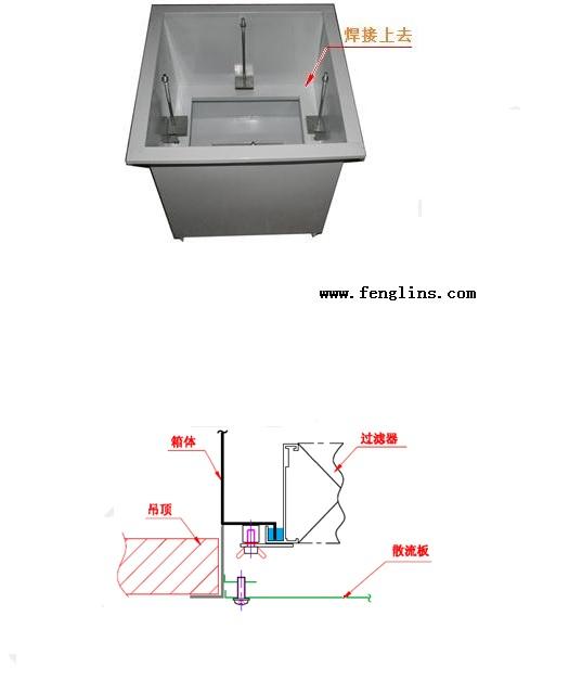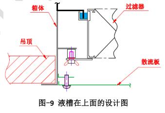另外過(guò)濾器液槽位置的不同,也還是稍有一些差別。圖-3 所示的是液槽在高效過(guò)濾器下方的設(shè)計(jì)圖,液槽在高效上方的送風(fēng)口設(shè)計(jì)見(jiàn)圖-9 所示。