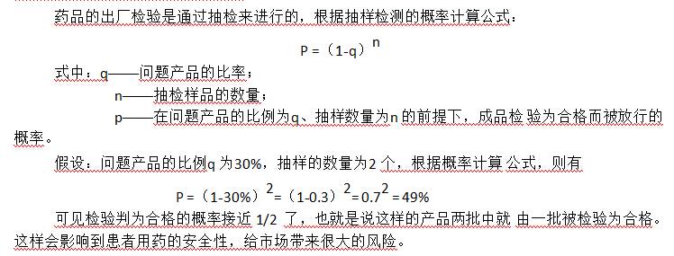 藥品的出廠檢驗(yàn)是通過(guò)抽檢來(lái)進(jìn)行的,根據(jù)抽樣檢測(cè)的概率計(jì)算公式:
