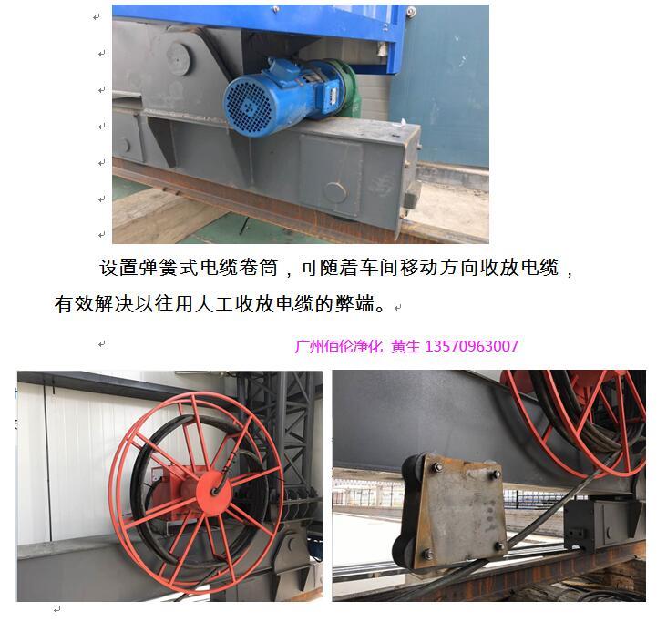 設(shè)置彈簧式電纜卷筒,可隨著車間移動(dòng)方向收放電纜,有效解決以往用人工收放電纜的弊端。