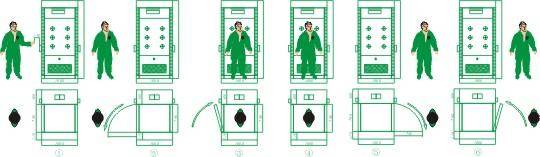 3.人進(jìn)入風(fēng)淋室,進(jìn)門(mén)自動(dòng)關(guān)閉;